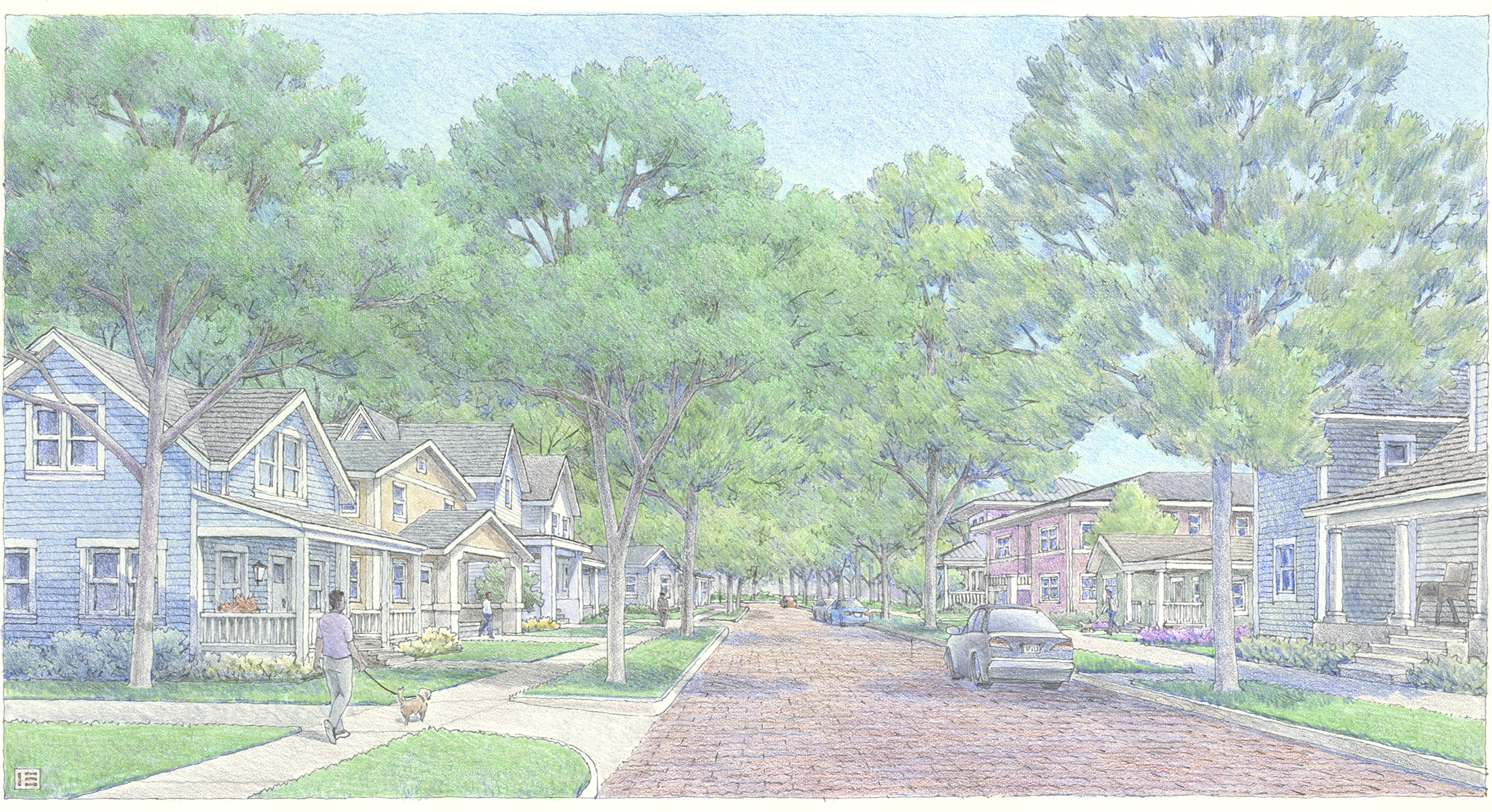 The work carried out under the Housing and Community Regeneration Initiative is grounded in the principles of New Traditional Architecture and New Urbanism. Central to this initiative is the belief that, as stewards of our built environment, we must seek to facilitate a robust social infrastructure and create a better world for future generations by developing and promoting beautiful, enduring buildings within human-scale, walkable communities.